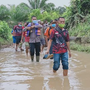 Selain mengunjungi titik banjir, rombongan juga menyerahkan bantuan berupa sembako kepada para korban banjir disetiap desa yang dikunjungi.