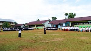 Sanggau ledo_Bengkayang. Plt kepala madrasah, dewan guru, karyawan dan para siswa siswi mulai dari kelas X, XI dan XII mengikuti upacara bendera dalam kegiatan peringatan Hari Santri Nasional Tahun 2022 di halaman MTs Yasti/Pondok Pesantren Raudhatul Ulum Kecamatan Sanggau ledo tepat pukul 07.00 wiba Sabtu, 22/10/2022.